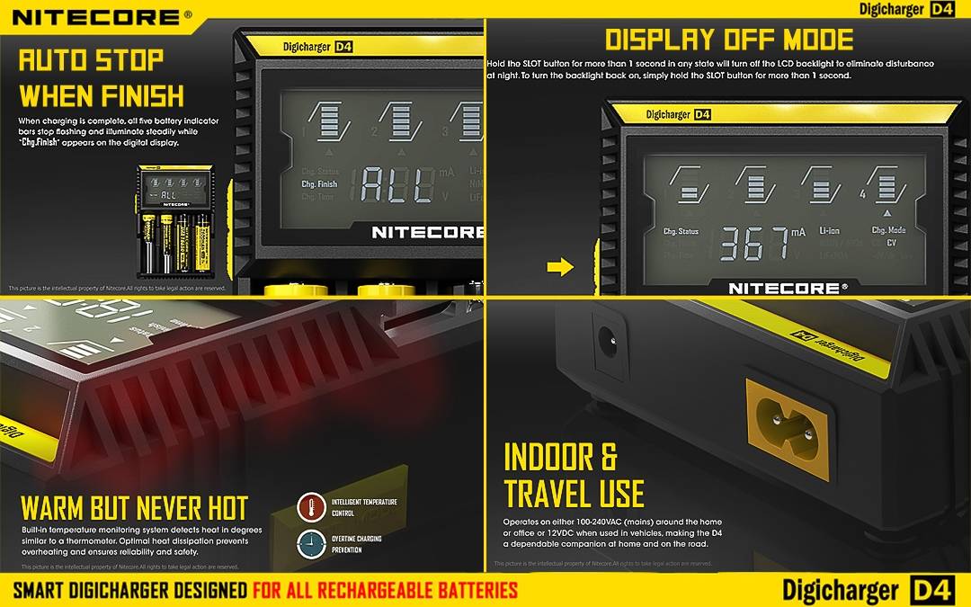 يأتي بأربع قنوات شحن مستقلة. قادر على مراقبة وشحن أربع بطاريات في وقت واحد.